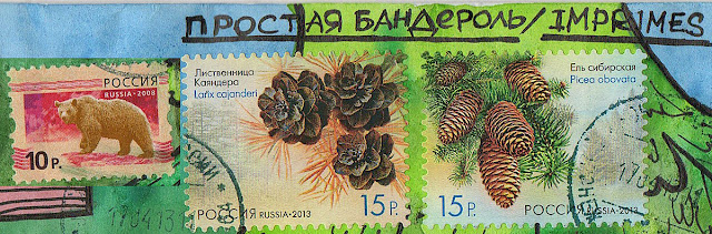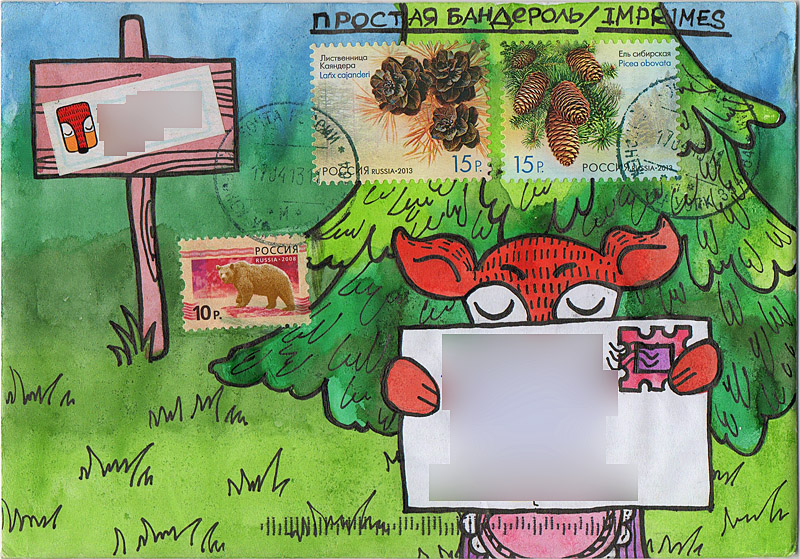 Я уже показывала конверт в моём блоге, но вот он уже прошел все почтовое путешествие. Благо, всё прошло хорошо, и картинка не пострадала)